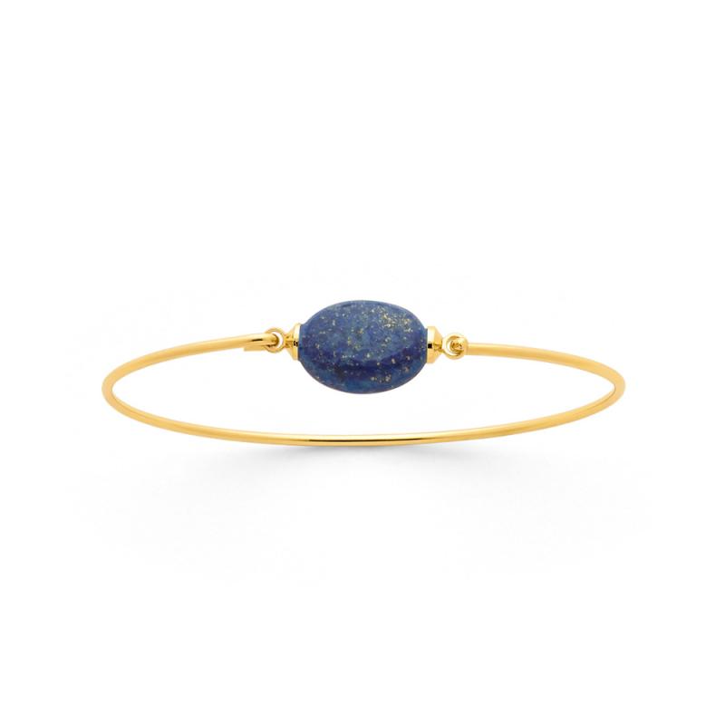 Jonc acier doré ouvrant avec lapis lazuli diamètre 60 mm