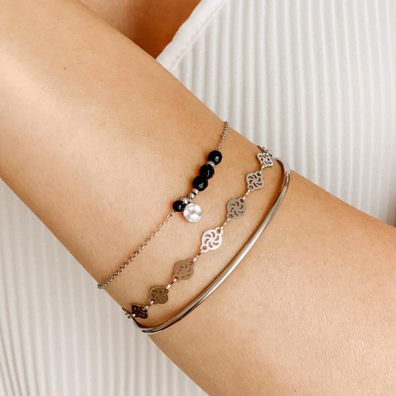 La finesse de ce bracelet en acier fait tout son charme. Ce bijou a été créé avec pour mots d'ordre la légèreté et la finesse. Ce bracelet de notre collection Anaëlle accentuera parfaitement la délicatesse de celle qui le porte. C'est un bracelet ouvrant d'un diamètre de 60 mm.