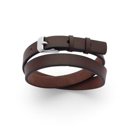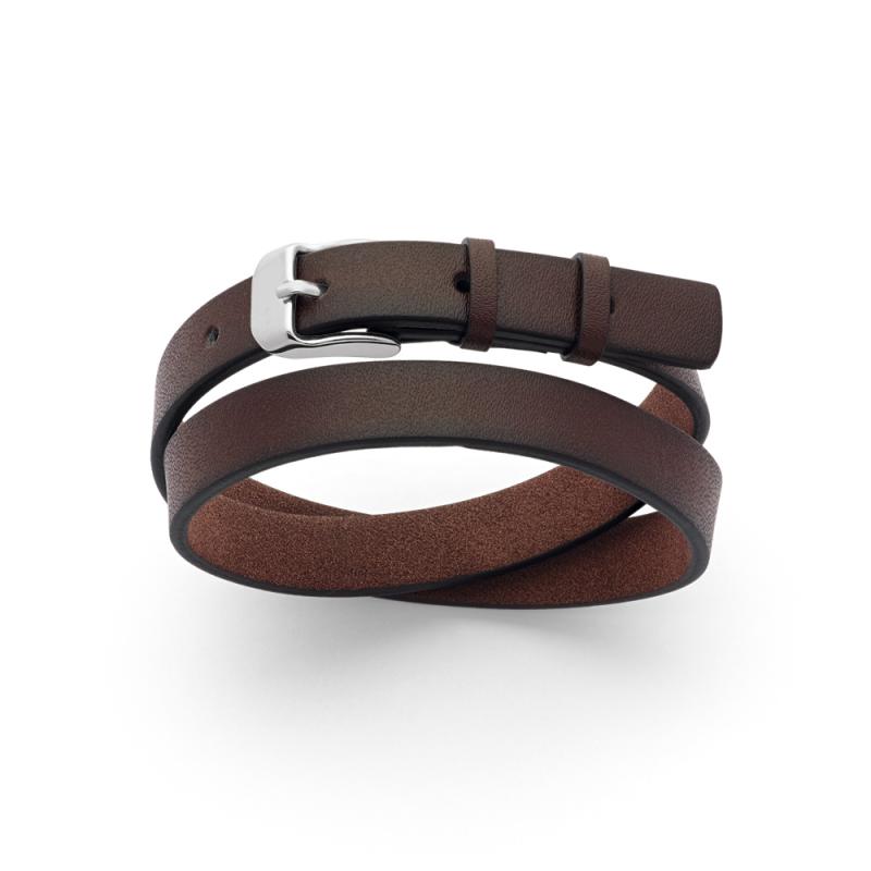 Bracelet double tour acier et croûte de cuir réglable de 18 à 20,5 cm