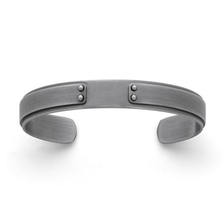 Les hommes bien dans leur époque aiment porter des bijoux et particulièrement des bracelets. Ce jonc plat ouvert en acier vieilli arbore une patine qui plait aux hommes. Les rivets sur le dessus du bracelet apportent une belle finition. Ce jonc est disponible en 66 mm de diamètre.