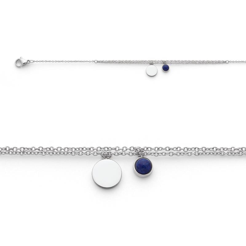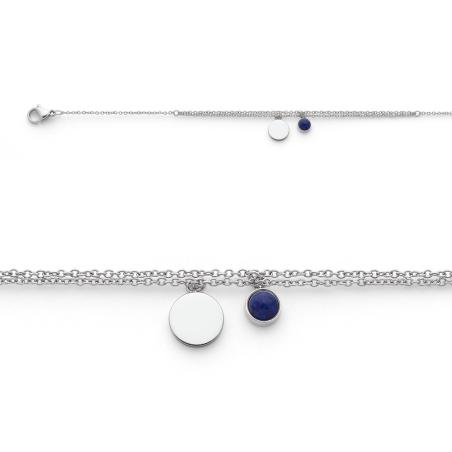 Bracelet acier avec lapis-lazuli réglable de 15,5 à 19 cm