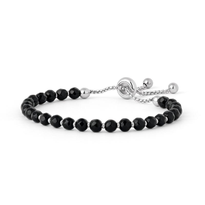 Bracelet acier avec agate noire réglable de 16 à 20 cm
