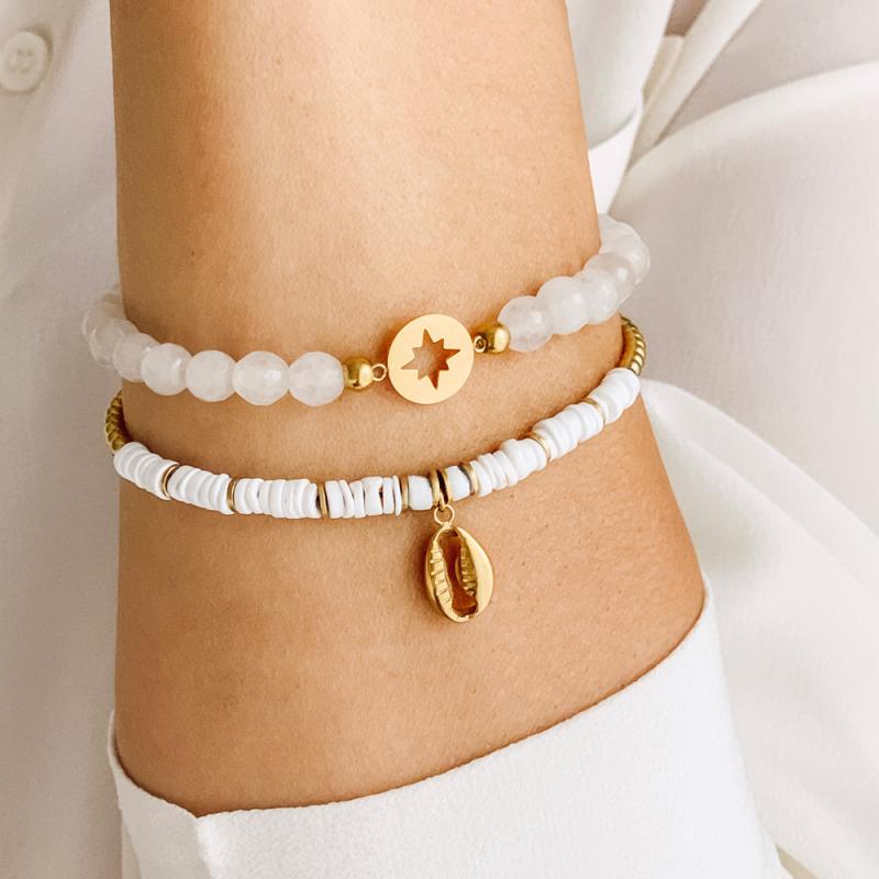 Bracelet acier doré avec coquillage réglable de 15 à 21 cm
