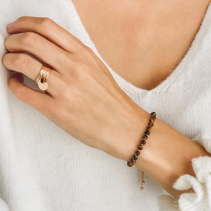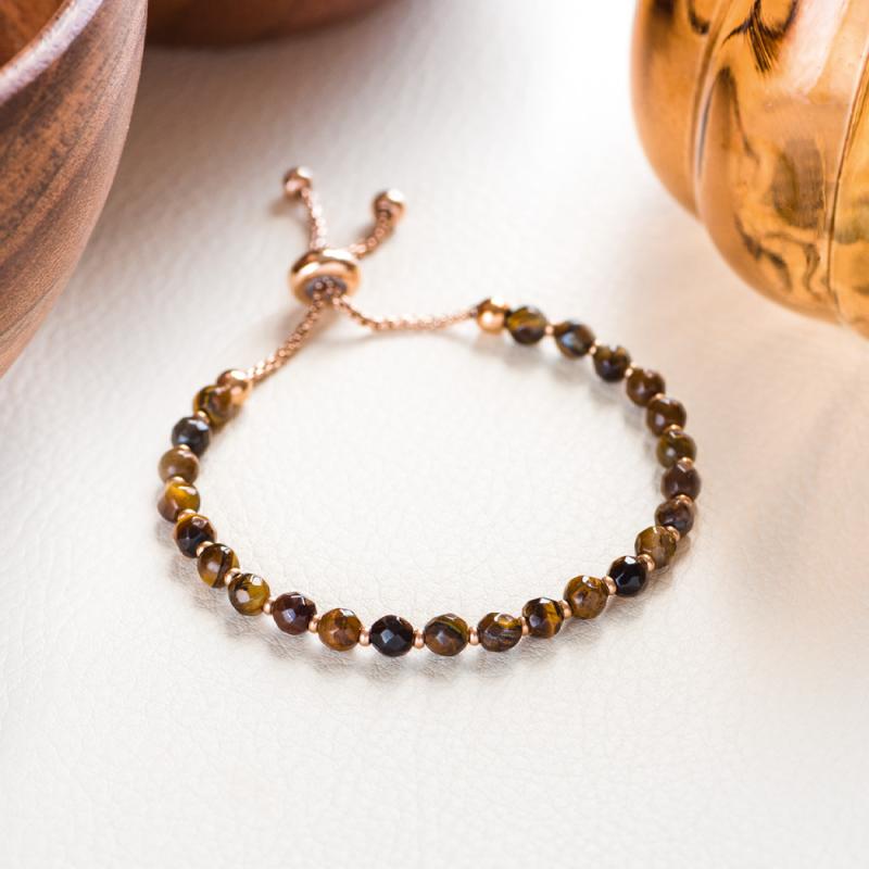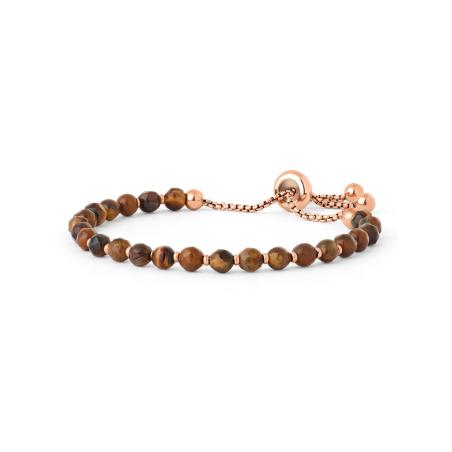 Bracelet acier rose avec oeil de tigre ajustable de 16 à 20 cm