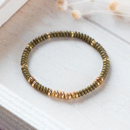 Bracelet élastique acier doré avec hématite