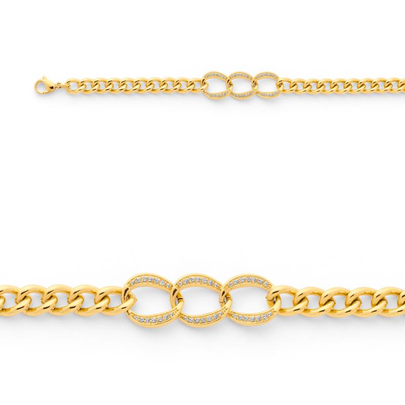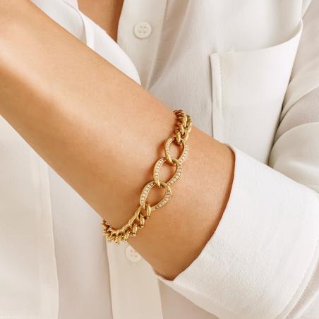 Bracelet acier doré avec zirconias réglable de 17 à 20 cm