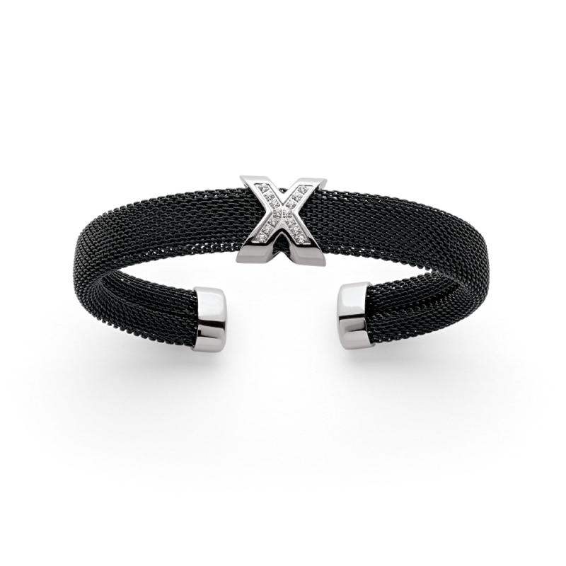 Bracelet rigide acier avec cristal diamètre 60 mm