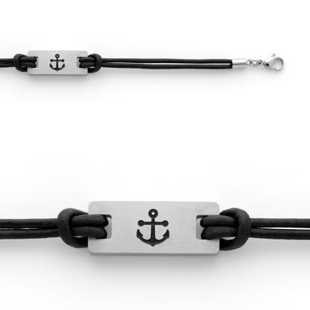 Bracelet acier et croûte de cuir réglable de 19 à 22 cm