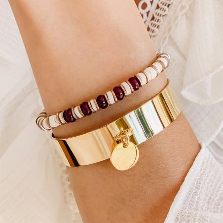 Bracelet acier doré avec quartzite teintée réglable de 16 à 20 cm