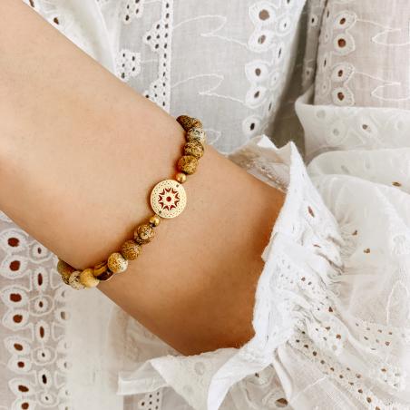 Bracelet élastique acier doré avec jaspe