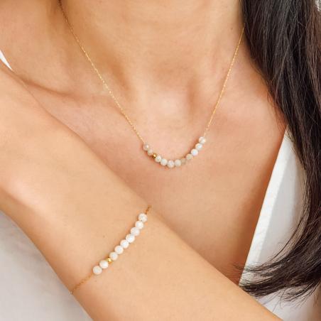 Bracelet acier doré avec pierre de lune réglable de 16 à 19 cm