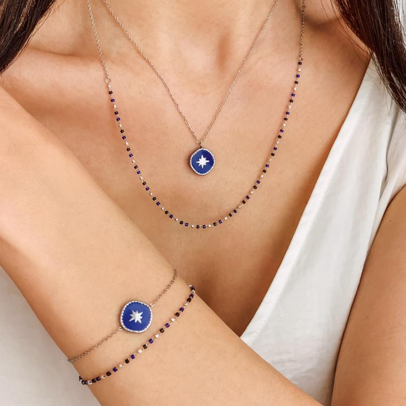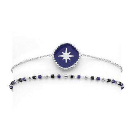 Bracelet double acier avec miyuki réglable de 16 à 19 cm