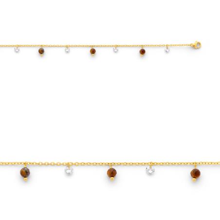 Bracelet acier doré avec oeil de tigre réglable de 16 à 19 cm