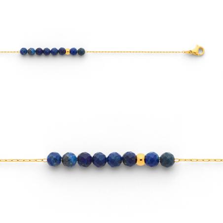 Bracelet acier doré avec lapis-lazuli réglable de 16 à 19 cm