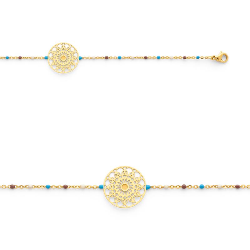 Bracelet acier doré avec émail réglable de 16 à 19 cm