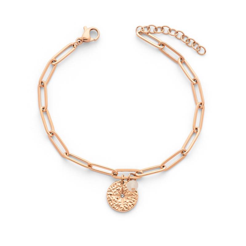 Bracelet acier rose avec agate blanche réglable de 16,5 à 19,5 cm
