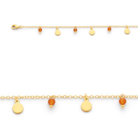 Bracelet acier doré avec aventurine rouge réglable de 16 à 19 cm