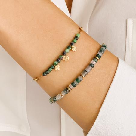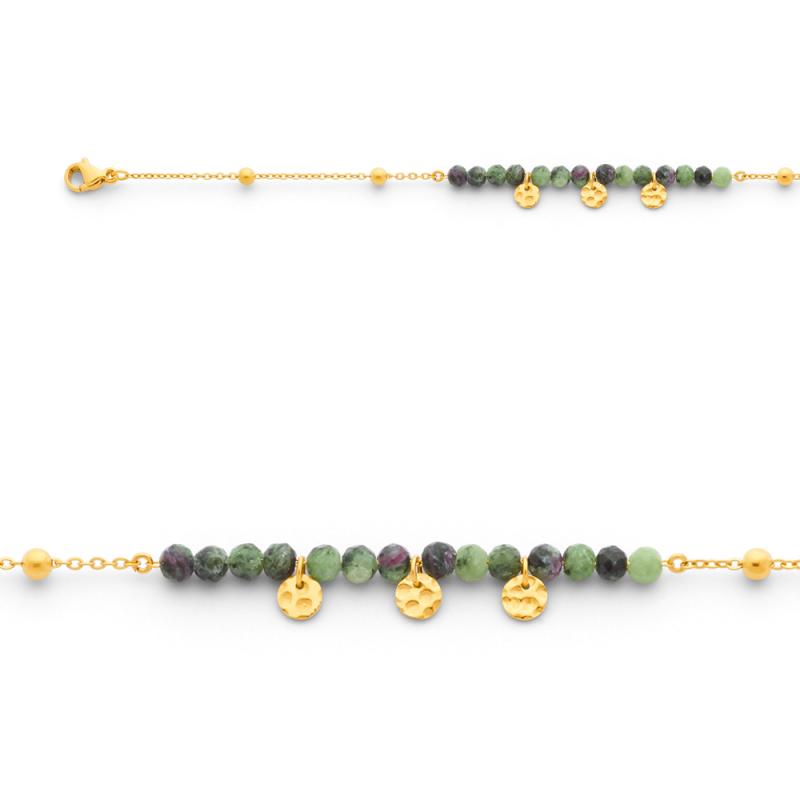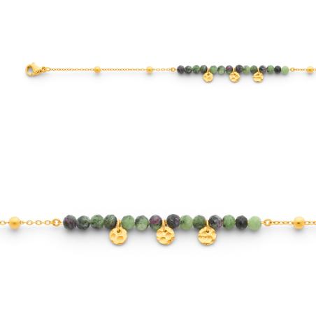 Bracelet acier doré avec rubis zoisite réglable de 16 à 19 cm