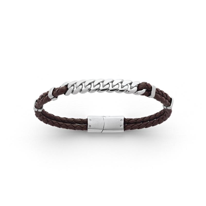 Bracelet acier avec croûte de cuir réglable de 20 à 21 cm