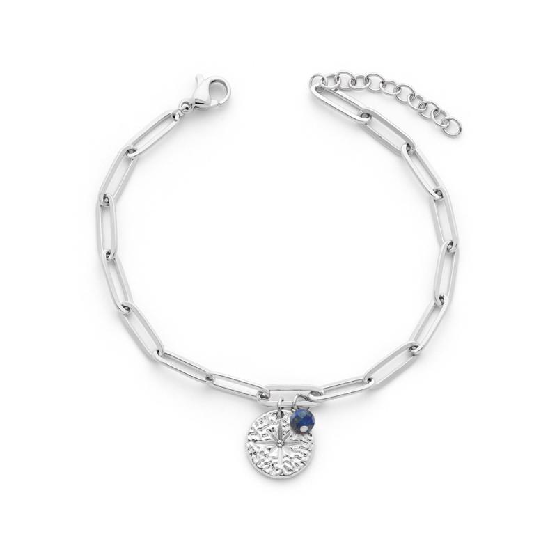 Bracelet acier avec lapis-lazuli et cristal 16,5 à 19,5 cm