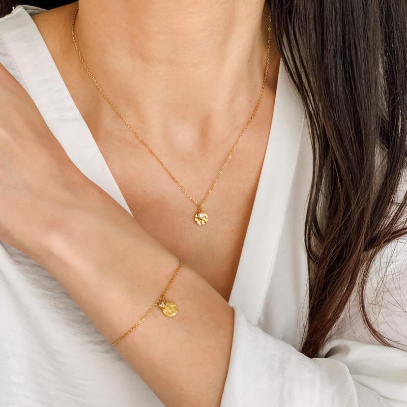 Bracelet acier doré avec zirconia réglable de 16 à 19 cm