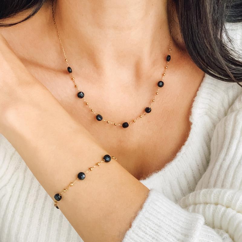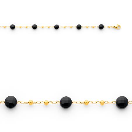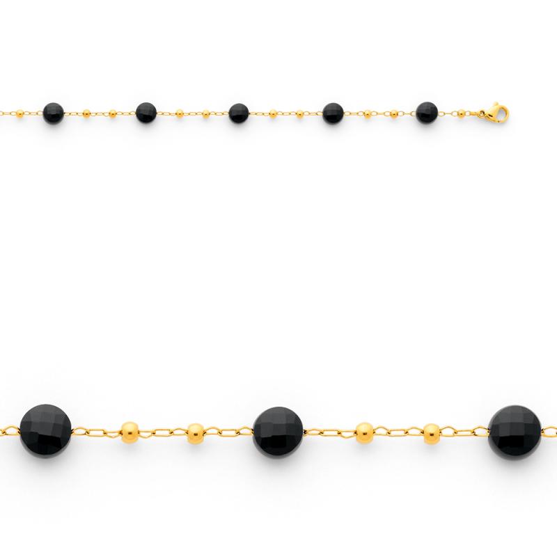 Bracelet acier doré avec agate noire réglable de 16 à 19 cm