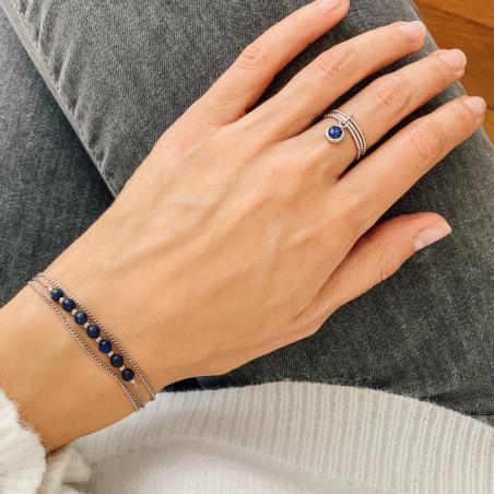 Bracelet triple acier avec lapis-lazuli réglable de 16 à 19 cm