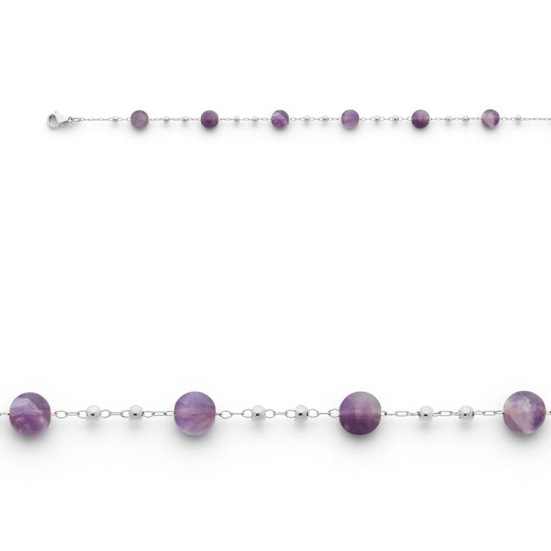 Bracelet acier avec améthyste réglable de 16 à 19 cm