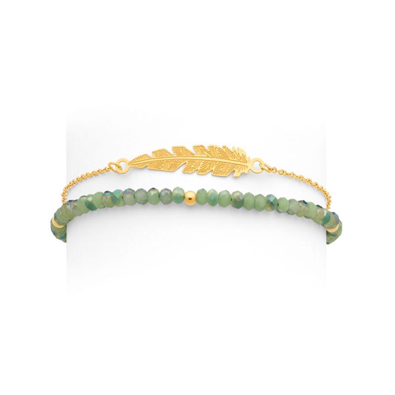 Bracelet double acier doré avec cristal réglable de 16 à 19 cm