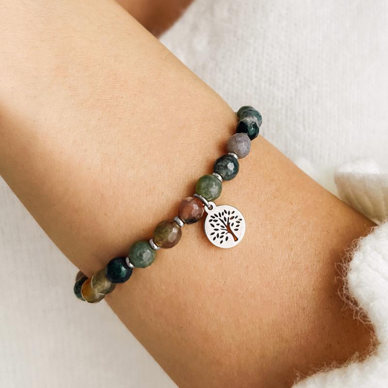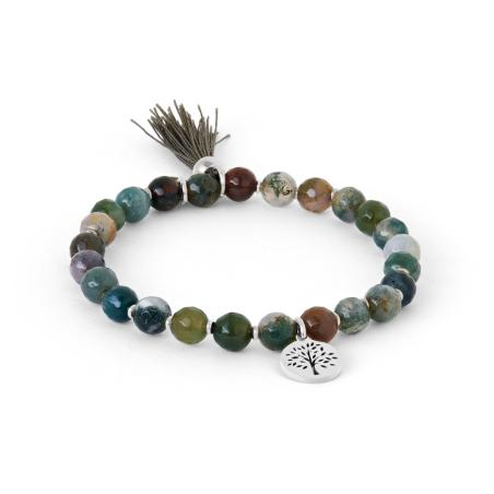 Bracelet élastique acier avec agate indienne