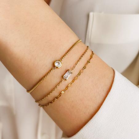 Bracelet acier doré avec zirconia réglable de 16 à 20 cm