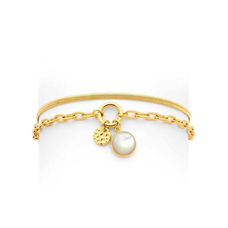 Bracelet double acier doré et nacre réglable de 16.5 à 20 cm