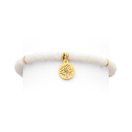 Bracelet élastique acier doré avec coquillage