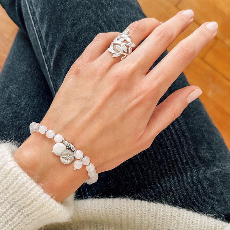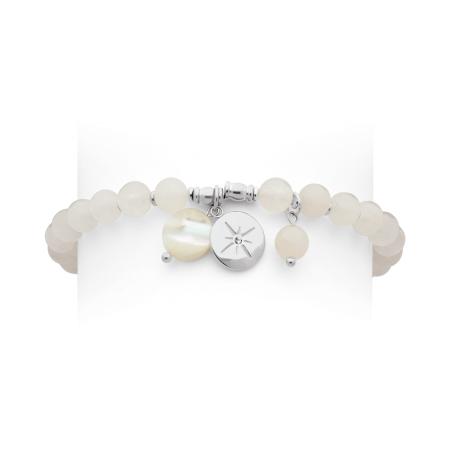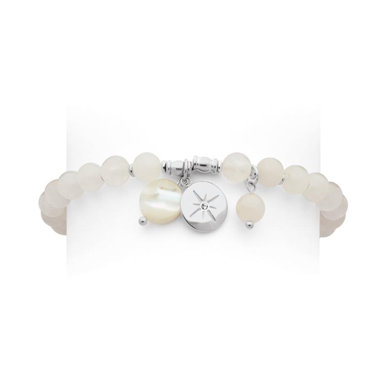 Bracelet acier avec quartz blanc avec zirconia et nacre élastique