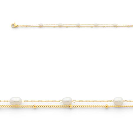 Bracelet acier doré avec perles de culture réglable de 16 à 19 cm