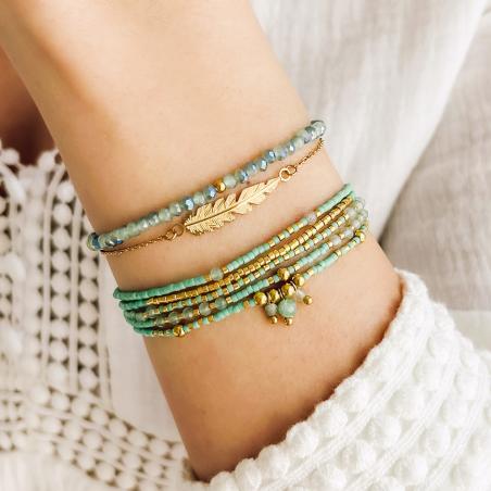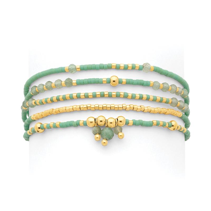 Bracelet 5 rangs acier doré ,aventurine et miyoki réglable 16 à 20 cm