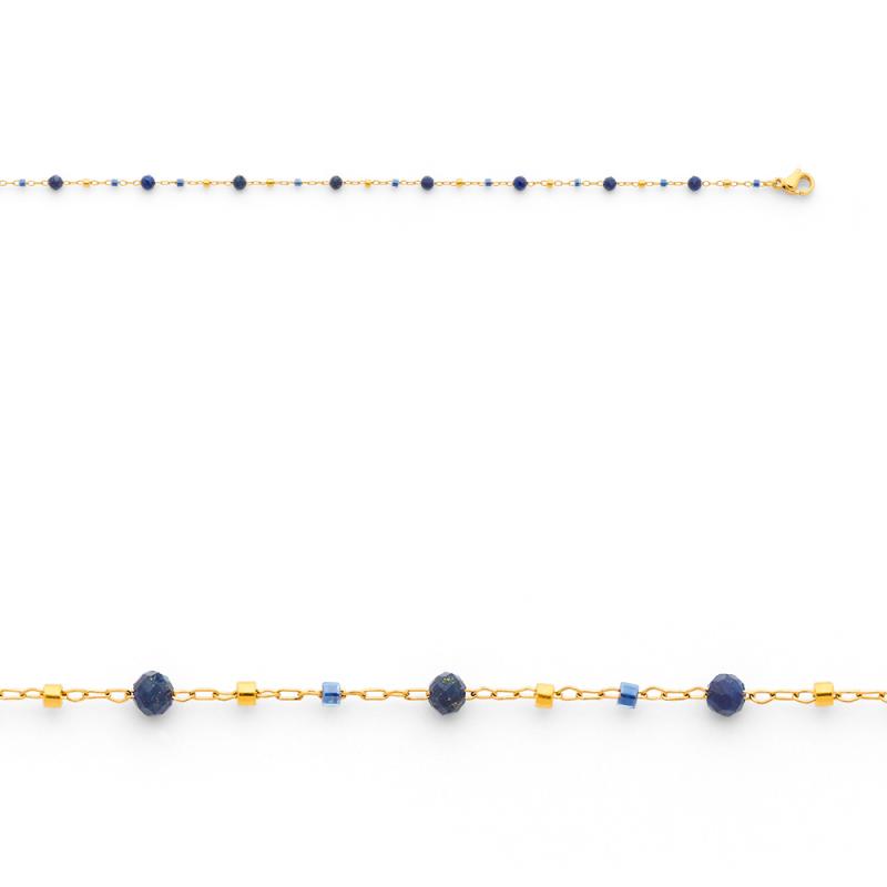 Bracelet acier doré avec lapis lazuli et miyuki réglable de 16 à 19cm