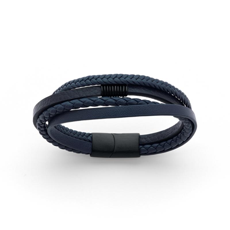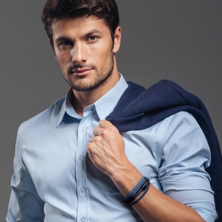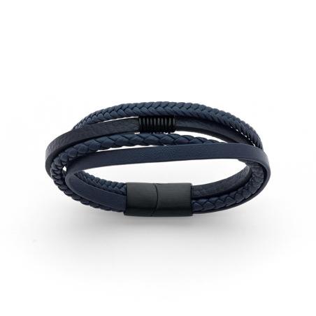 Bracelet acier et croûte de cuir réglable de 20 à 21 cm