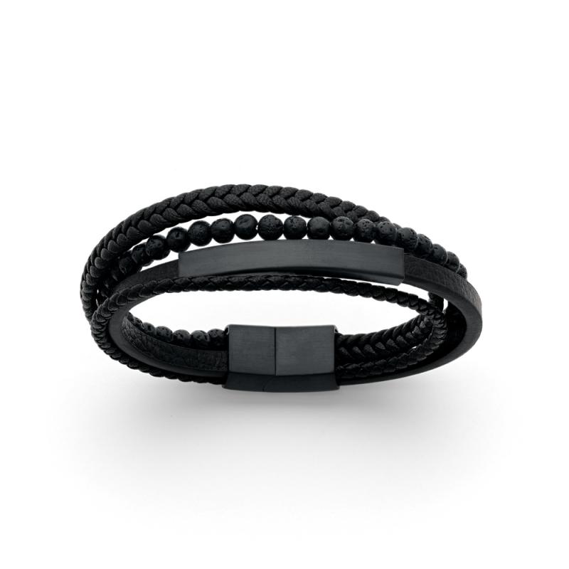 Bracelet acier avec lave et croûte de cuir réglable de 20 à 21 cm