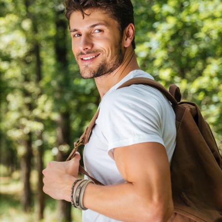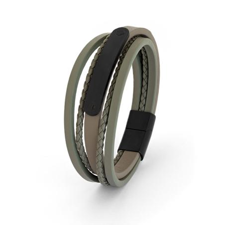 Bracelet acier avec croûte de cuir réglable de 20,5 à 21,5 cm