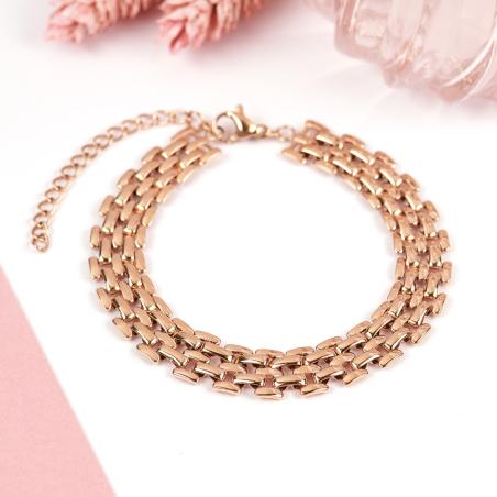 Bracelet acier rose réglable de 16.5 à 19.5 cm