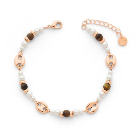 Bracelet acier rose avec oeil de tigre réglable de 17.5 à 20 cm