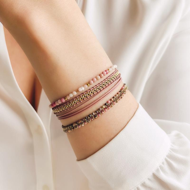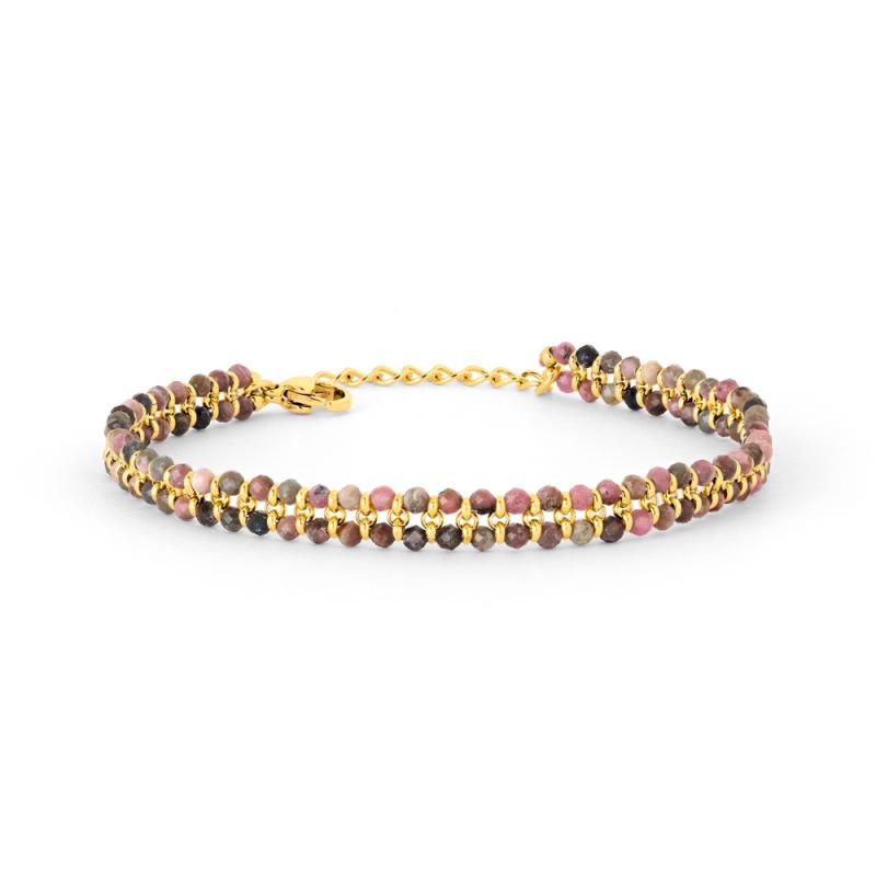 Bracelet acier doré avec tourmaline réglable de 16,5 à 19,5 cm