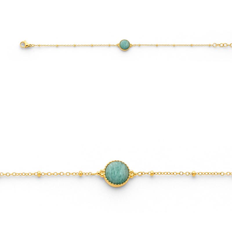 Bracelet acier doré avec amazonite réglable de 16 à 19 cm