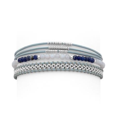 Bracelet acier avec agate, sodalite et croûte de cuir 16.5 à 19.5 cm