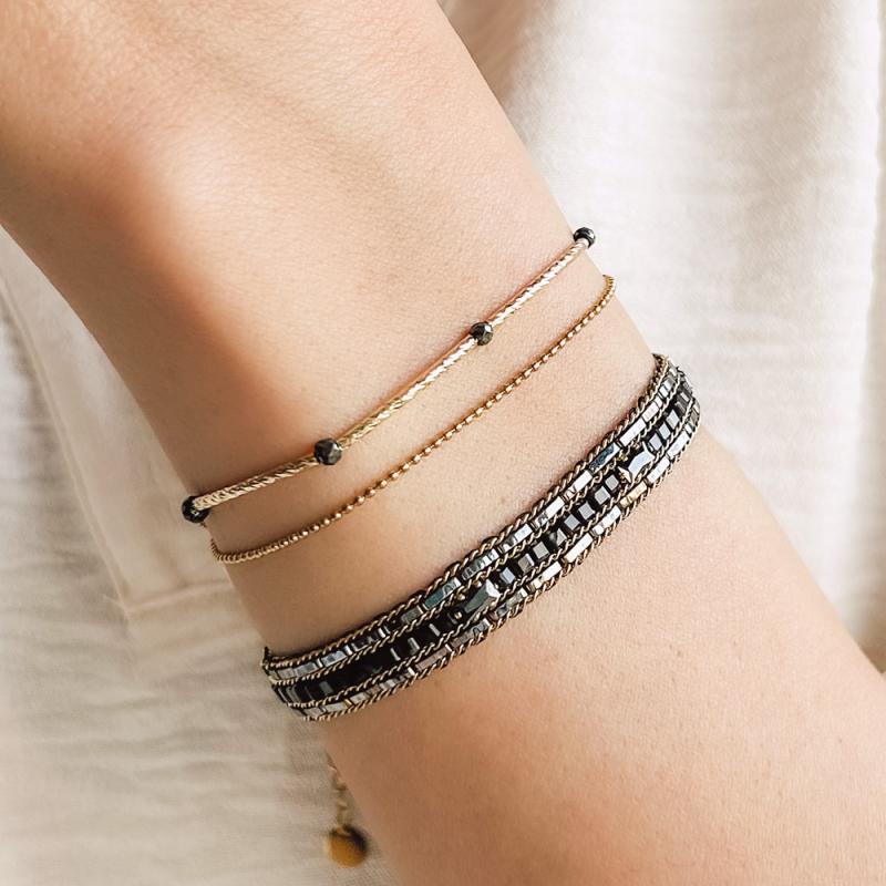 Bracelet acier doré avec cristal réglable de 16 à 19 cm