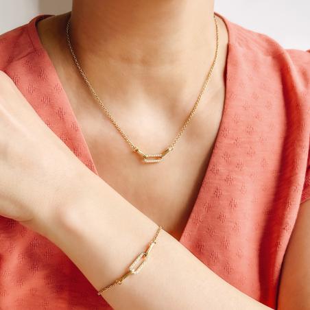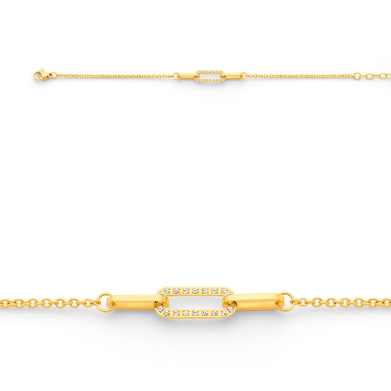 Bracelet acier doré avec zirconias réglable de 16 à 19 cm