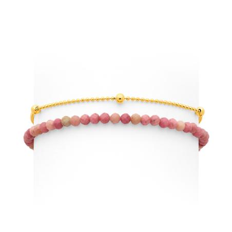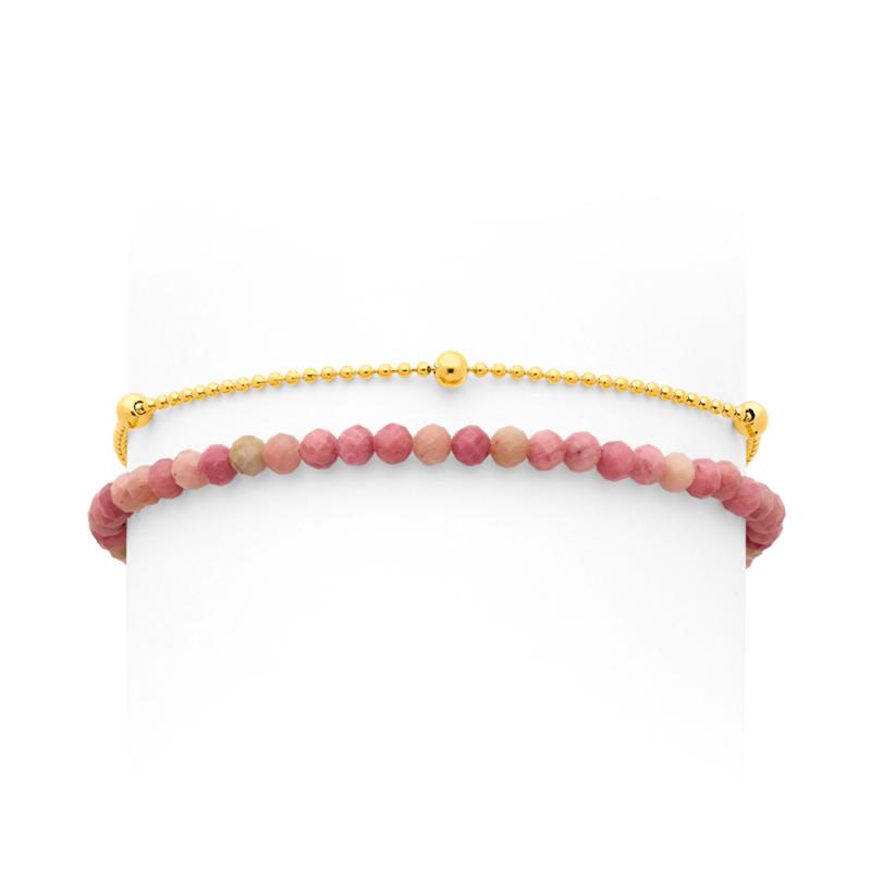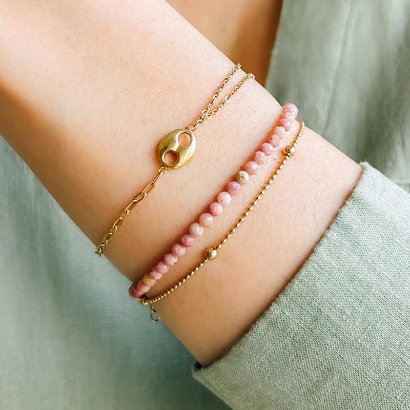 Bracelet acier doré avec rhodonite réglable de 16,5 à 19 cm