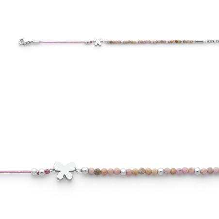 Bracelet acier doré avec jaspe rose réglable de 13.5 à 16.5 cm