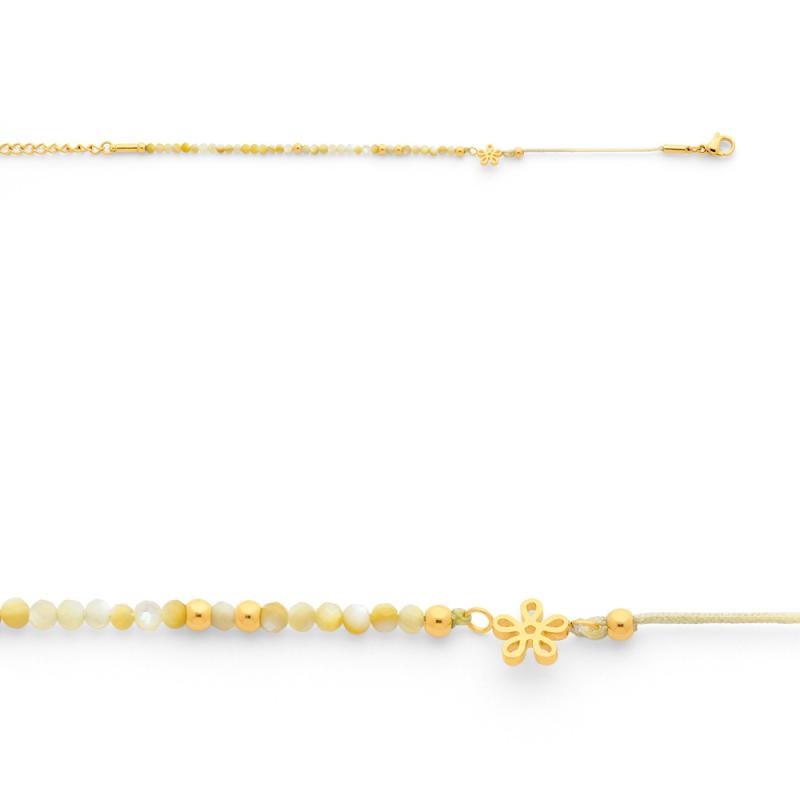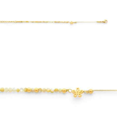 Bracelet acier doré avec citrine et coton réglable de 13.5 à 16.5 cm
